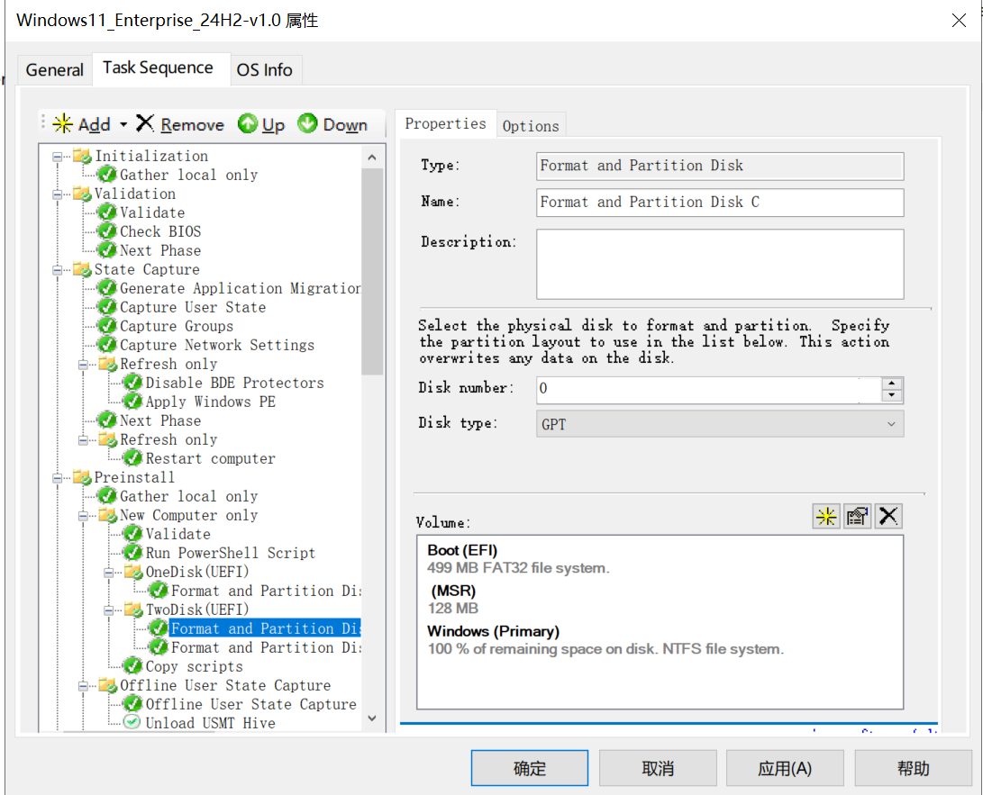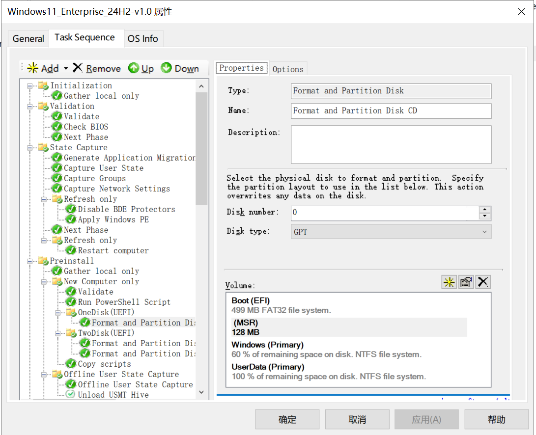 - 在“OneDisk(UEFI)”组内添加分区任务“Format and Partition Disk CD”